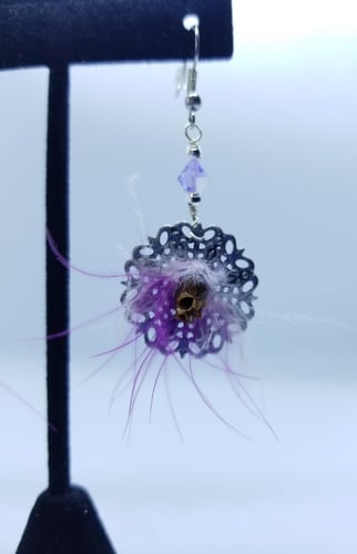 Fairy Shrunken Head Earrings With Purple and Pink Hair