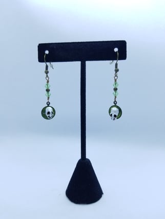 Glittering Green Enamel Fairy Skull Earrings With Peridot Swarovski Crystal Accents
