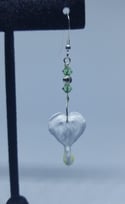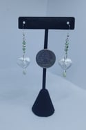 REAL Preserved White Bleeding Heart Flower Bud Earrings w/ Peridot Swarovski Crystals